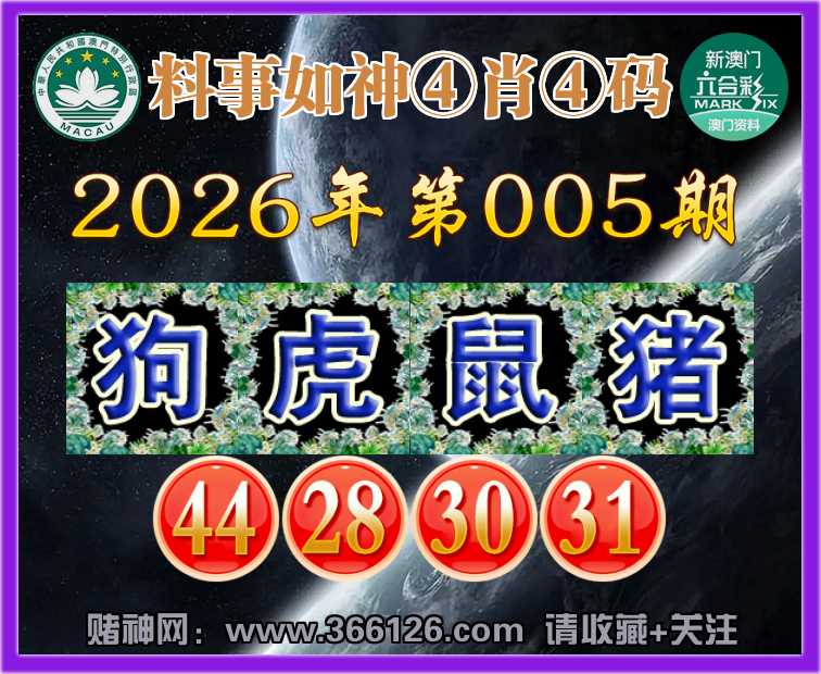 005期:【料事如神】 🥽④肖④码🥽【狗虎鼠】【44.28.30.31】开:猪43