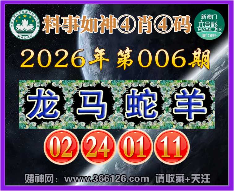 006期:【料事如神】 🥽④肖④码🥽【龙马羊】【02.24.01.11】开:蛇13
