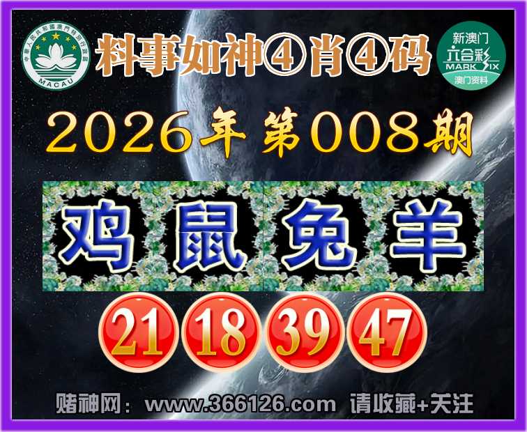 008期:【料事如神】 🥽④肖④码🥽【鼠兔羊】【21.18.39.47】开:鸡21