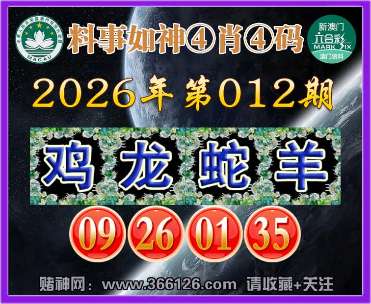 012期:【料事如神】 🥽④肖④码🥽【鸡龙蛇】【09.26.01.35】开:羊11