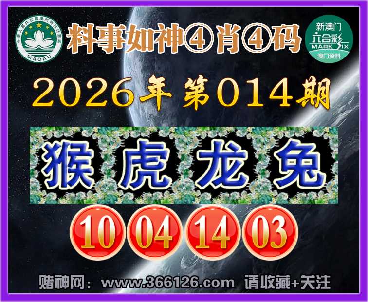 014期:【料事如神】 🥽④肖④码🥽【猴虎兔】【10.04.14.03】开:龙26