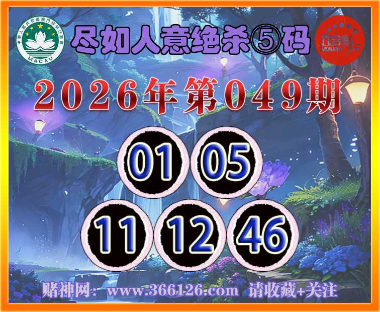 049期:【尽如人意】 📸绝杀⑤码📸【01.05.11.12.46】开:马13