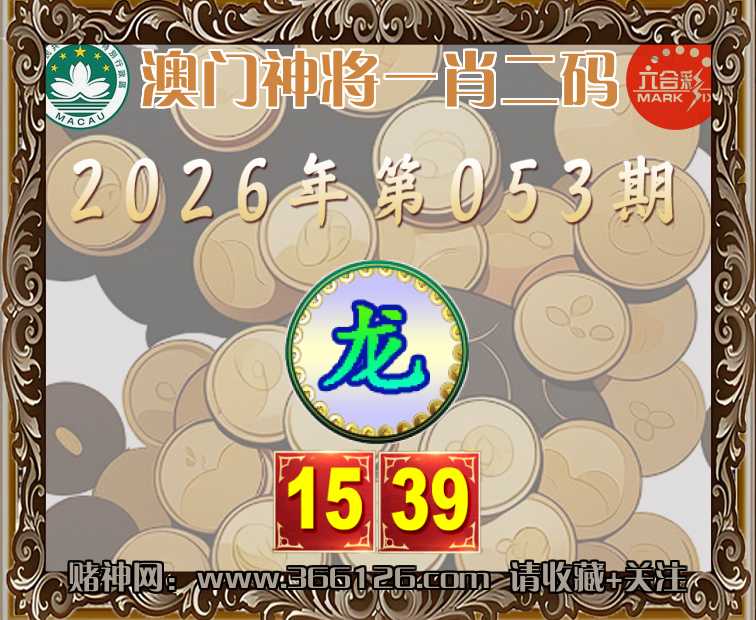 053期:『澳门神将』 🏃‍♀️一肖二码🏃‍♀️【】【15.39】开:龙15