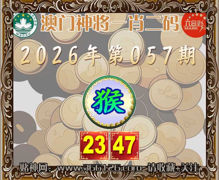 057期:『澳门神将』 🏃‍♀️一肖二码🏃‍♀️【】【23.47】开:猴23
