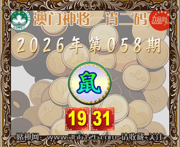 058期:『澳门神将』 🏃‍♀️一肖二码🏃‍♀️【】【19.31】开:鼠31
