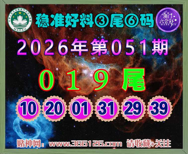 051期:『稳准好料』 🥼③尾⑥码🥼【019尾】开:01