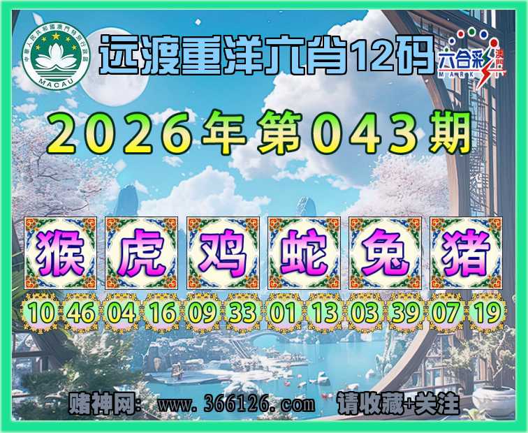 043期:《远渡重洋》 📸六肖12码📸【猴虎鸡兔猪】开:蛇13