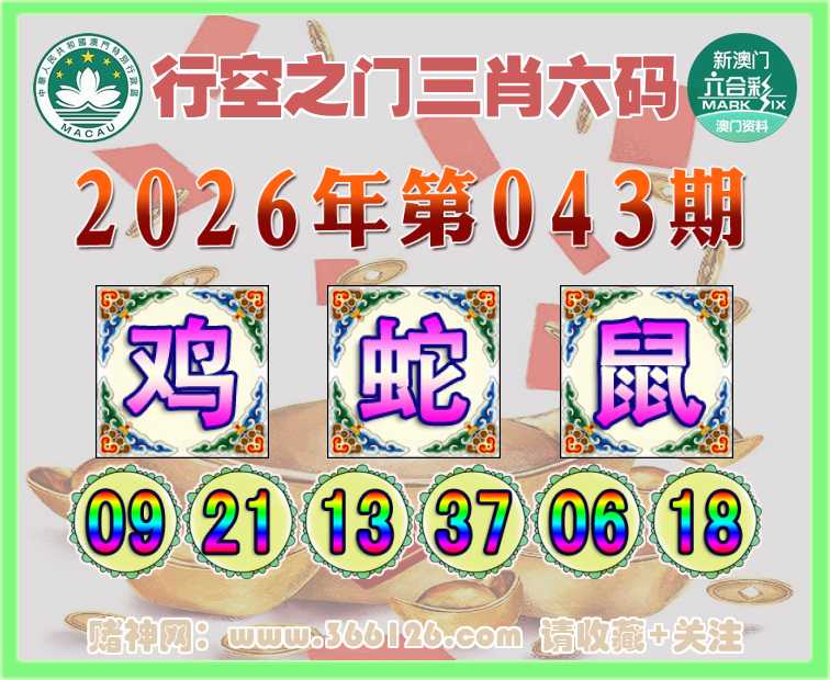 043期:【行空之门】 📙三肖六码📙【鸡鼠】开:蛇13