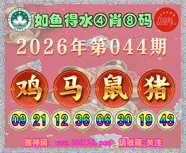 044期: ☺️《如鱼得水》 ☺️④肖⑧码☺️【鸡马鼠】开:猪19