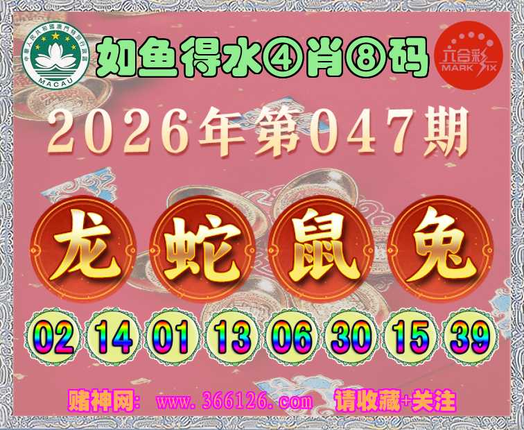 047期: ☺️《如鱼得水》 ☺️④肖⑧码☺️【龙蛇鼠】开:兔39