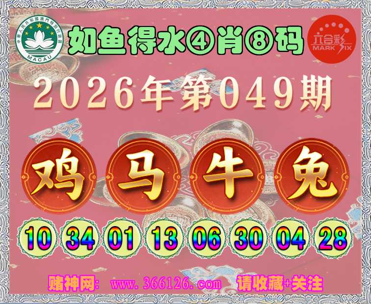049期: ☺️《如鱼得水》 ☺️④肖⑧码☺️【鸡牛兔】开:马13