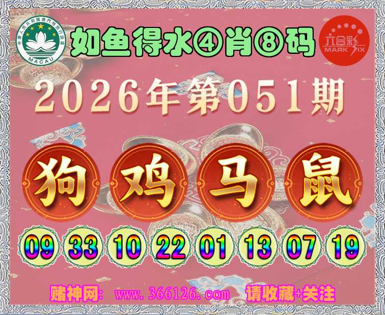 051期: ☺️《如鱼得水》 ☺️④肖⑧码☺️【狗鸡鼠】开:马01