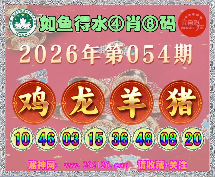 054期: ☺️《如鱼得水》 ☺️④肖⑧码☺️【鸡龙猪】开:羊48