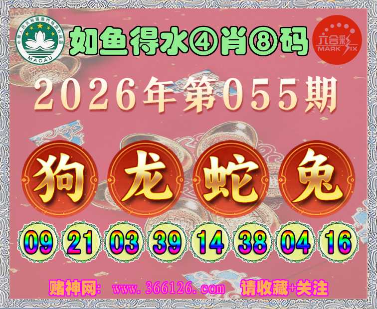 055期: ☺️《如鱼得水》 ☺️④肖⑧码☺️【狗龙兔】开:蛇14
