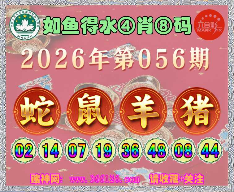 056期: ☺️《如鱼得水》 ☺️④肖⑧码☺️【蛇鼠猪】开:羊48