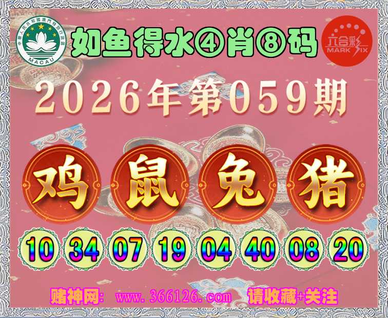 059期: ☺️《如鱼得水》 ☺️④肖⑧码☺️【鼠兔猪】开:鸡10