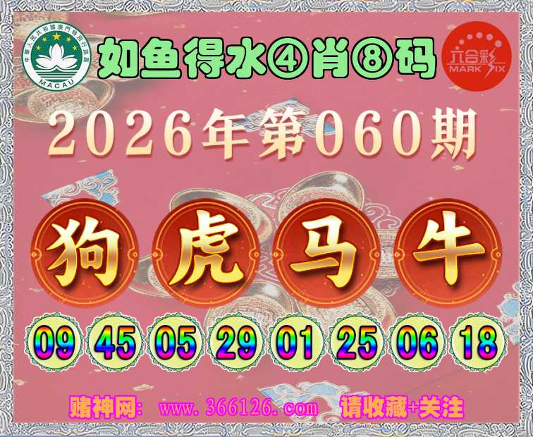 060期: ☺️《如鱼得水》 ☺️④肖⑧码☺️【虎马牛】开:狗09