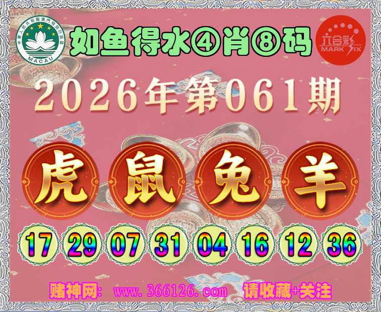 061期: ☺️《如鱼得水》 ☺️④肖⑧码☺️【鼠兔羊】开:虎29