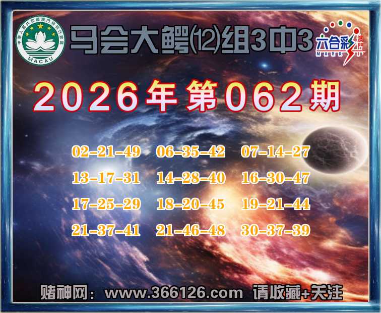 062期:【马会大鳄】 🍧⑿组3中3🍧