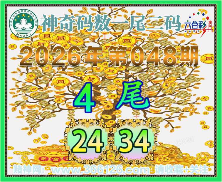 048期:〖神奇码数〗 👩‍🌾一尾二码👩‍🌾【4尾主:24.34】开:24