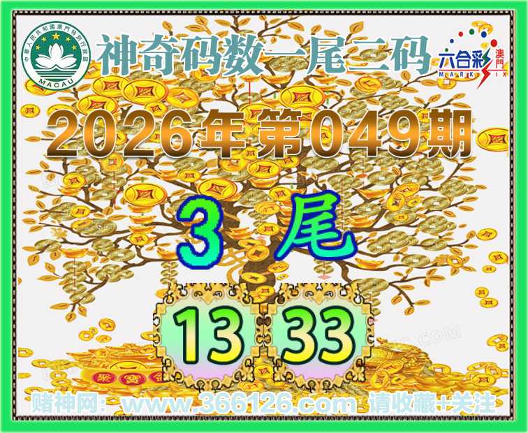 049期:〖神奇码数〗 👩‍🌾一尾二码👩‍🌾【3尾主:13.33】开:13