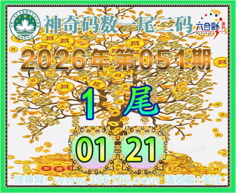 051期:〖神奇码数〗 👩‍🌾一尾二码👩‍🌾【1尾主:01.21】开:01