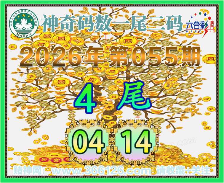 055期:〖神奇码数〗 👩‍🌾一尾二码👩‍🌾【4尾主:04.14】开:14