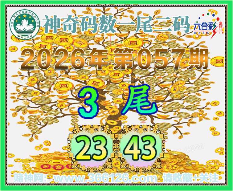 057期:〖神奇码数〗 👩‍🌾一尾二码👩‍🌾【3尾主:23.43】开:23