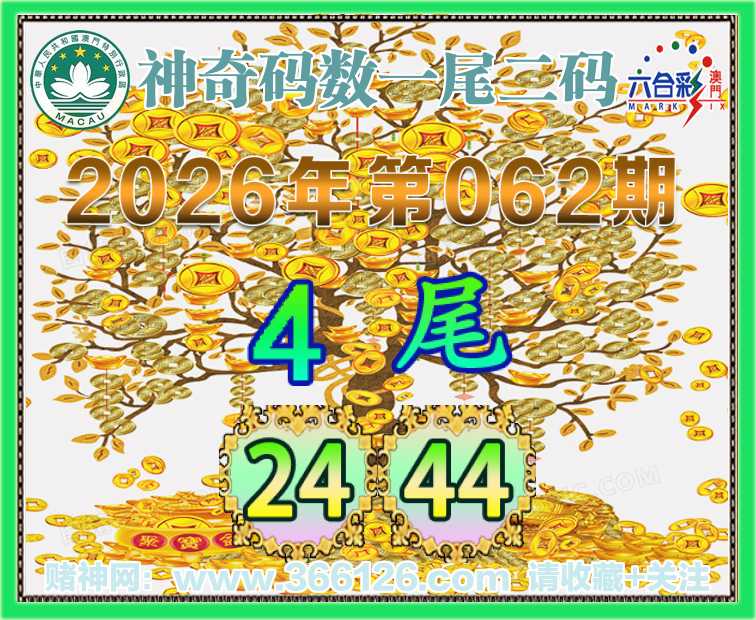 062期:〖神奇码数〗 👩‍🌾一尾二码👩‍🌾【4尾主:24.44】开:24
