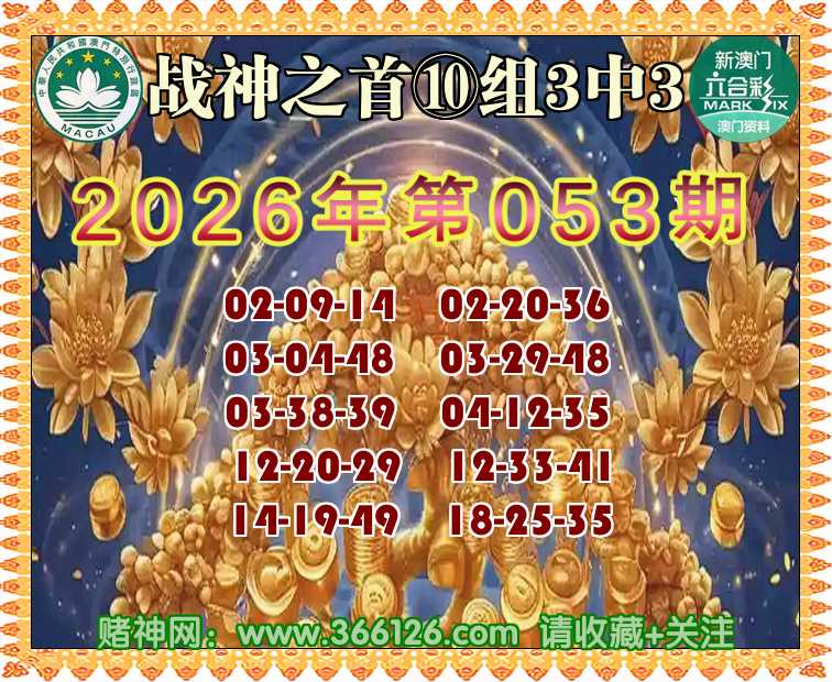 053期:『战神之首』 😜⑩组3中3😜