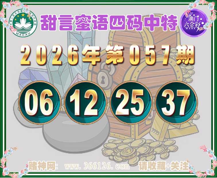 057期:《甜言蜜语》 🍧四码中特🍧【06.12.25.37】开:23