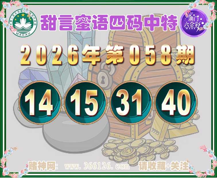 058期:《甜言蜜语》 🍧四码中特🍧【14.15.31.40】开:31