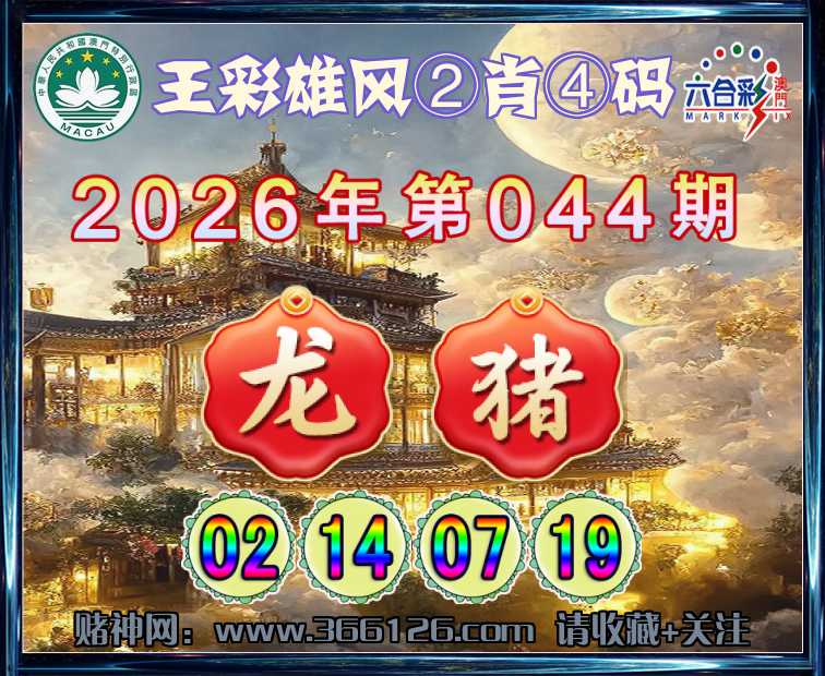 044期:〖王彩雄风〗 💎②肖④码💎【龙】【02.14.07.19】开:猪19