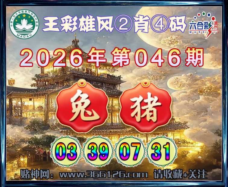 046期:〖王彩雄风〗 💎②肖④码💎【猪】【03.39.07.31】开:兔03