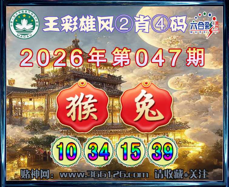 047期:〖王彩雄风〗 💎②肖④码💎【猴】【10.34.15.39】开:兔39
