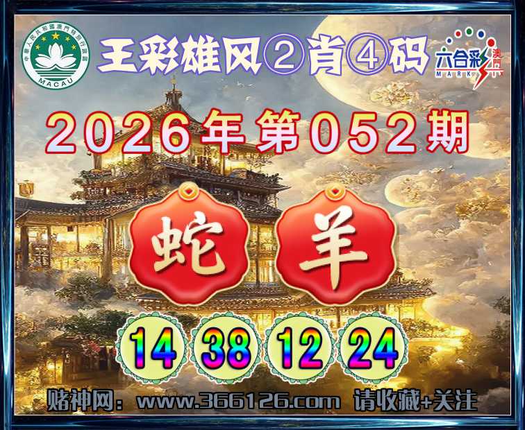 052期:〖王彩雄风〗 💎②肖④码💎【羊】【14.38.12.24】开:蛇38