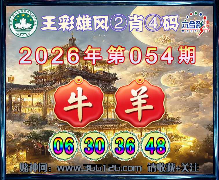 054期:〖王彩雄风〗 💎②肖④码💎【牛】【06.30.36.48】开:羊48