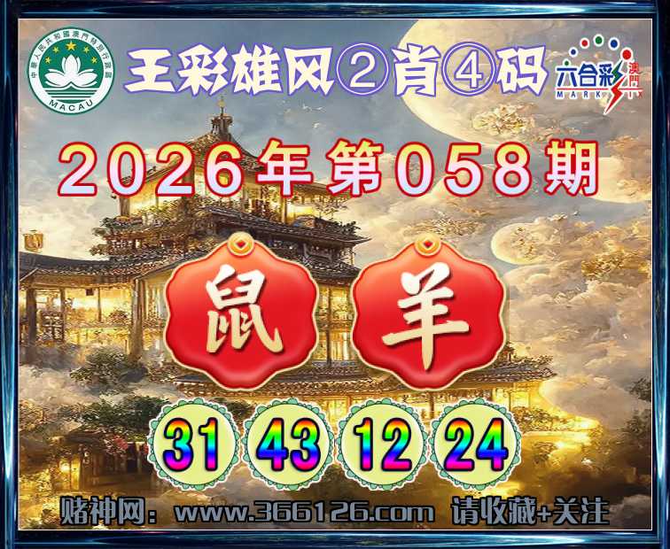 058期:〖王彩雄风〗 💎②肖④码💎【羊】【31.43.12.24】开:鼠31
