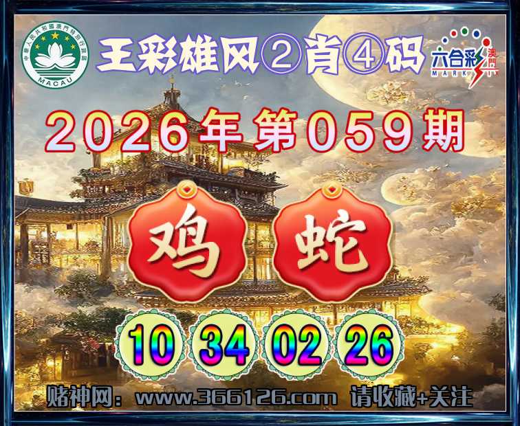 059期:〖王彩雄风〗 💎②肖④码💎【蛇】【10.34.02.26】开:鸡10