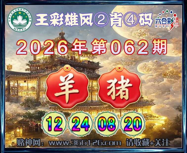 062期:〖王彩雄风〗 💎②肖④码💎【猪】【12.24.08.20】开:羊24