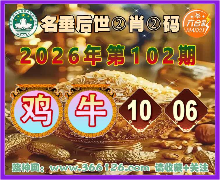 102期:【名垂后世】 🎖️②肖②码🎖️【鸡牛】【10.06】开:猪20